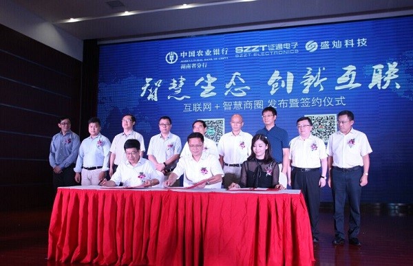 2016年8月17日,由農(nóng)業(yè)銀行湖南分行、證通電子、盛燦科技共同打造的“互聯(lián)網(wǎng)+智慧商圈”項(xiàng)目在長(zhǎng)沙成功落地。該項(xiàng)目不僅是是湖南省建設(shè)智慧城市、打造“互聯(lián)網(wǎng)+城市”的重要模塊,也是基于支付場(chǎng)景創(chuàng)新,涵蓋掃一掃、搖一搖、微信Wi-Fi、APP等多維支付手段的全國(guó)首個(gè)“智慧商圈”。