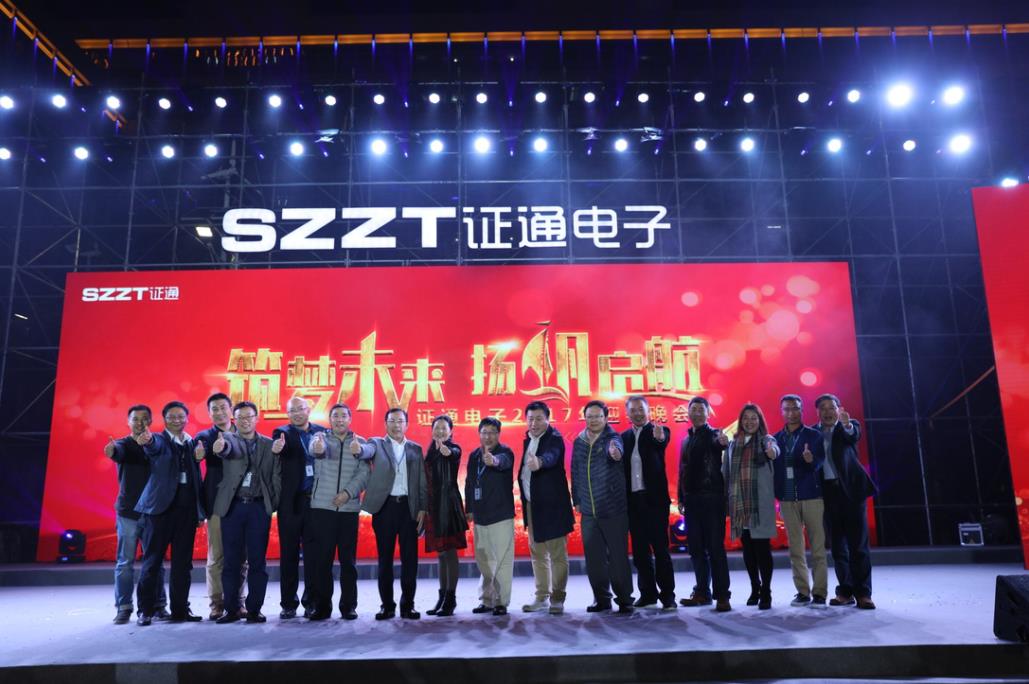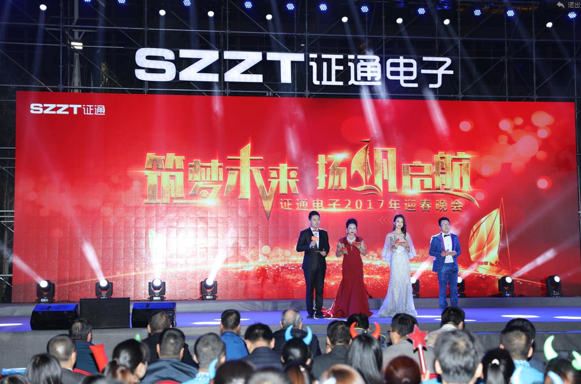 ? 2017年1月18日晚,“筑夢未來·揚(yáng)帆啟航”證通電子2017年迎春晚會在深圳市證通電子產(chǎn)業(yè)園璀璨啟幕。證通電子總裁曾勝強(qiáng)先生攜夫人、證通電子常務(wù)副總裁許忠慈先生等領(lǐng)導(dǎo)、嘉賓及公司全體同仁齊聚一堂,共襄盛舉,為2016的累累碩果喝彩,也為2017的熱血出征燃起熊熊之火。