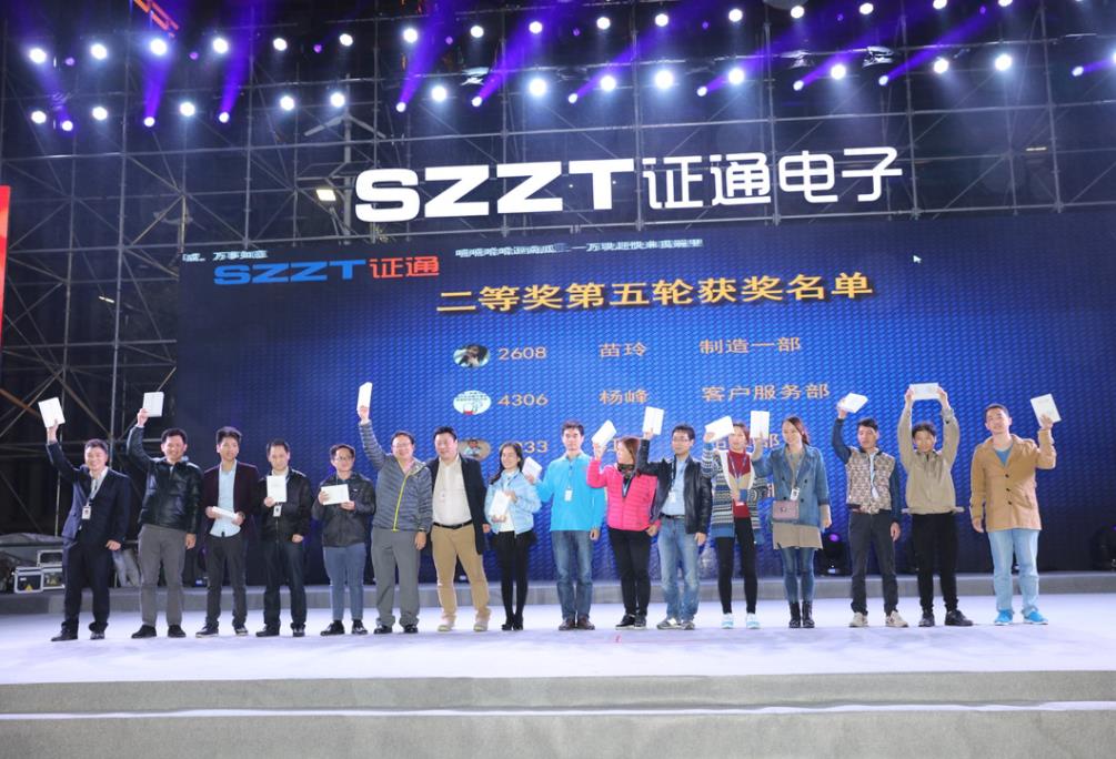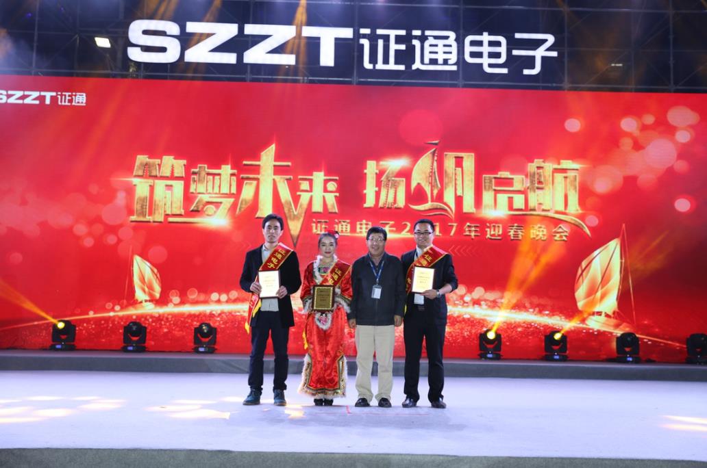 ?? 曾總提出,“2017年證通電子應(yīng)明確戰(zhàn)略目標(biāo),把握業(yè)務(wù)方向、思路以及重點(diǎn)工作,推進(jìn)管理升級,形成管理沉淀,豐富證通的組織文化;改善組織機(jī)能,形成目標(biāo)導(dǎo)向的組織績效管理;提升人員素質(zhì)和基本技能。2016年證通電子成績卓然,2017年更該奮起。筑夢未來,揚(yáng)帆啟航”。在證通電子總裁曾勝強(qiáng)先生的精彩致辭過后,迎春晚會暨2016年度表彰大會正式開始。本次大會共表彰了2016年具有杰出表現(xiàn)的年度優(yōu)秀員工70名、杰出員工3名及優(yōu)秀團(tuán)隊(duì)5支,并由到場領(lǐng)導(dǎo)為他們頒發(fā)綬帶、錦旗和獲獎證書。