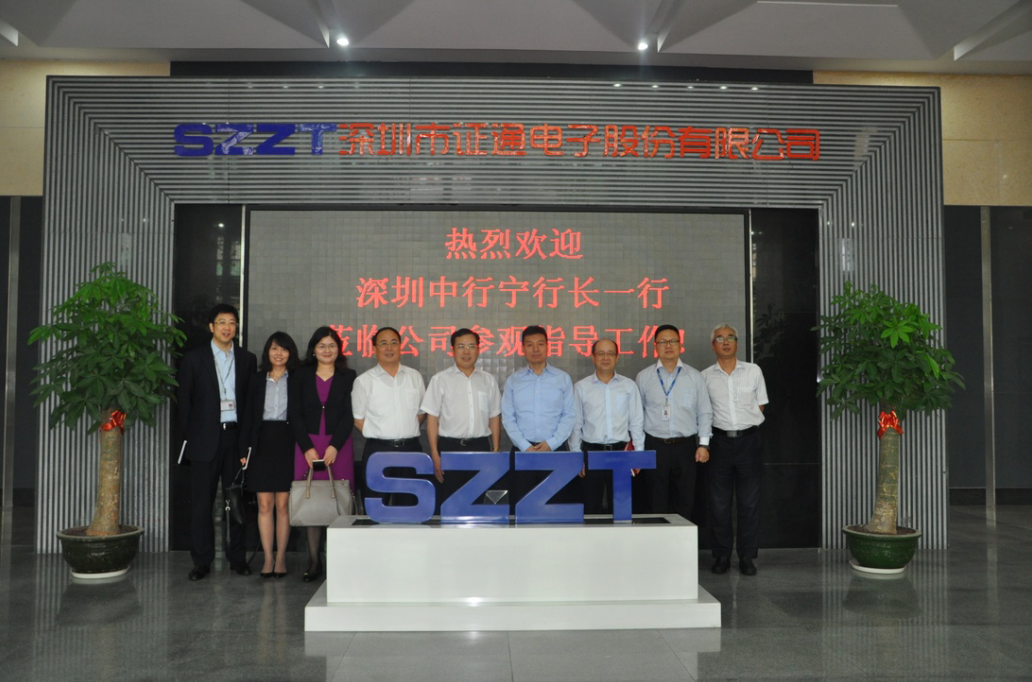 2017年5月12日,中國(guó)銀行深圳分行黨委書(shū)記、行長(zhǎng)寧效云一行蒞臨證通電子,在總裁曾勝?gòu)?qiáng)先生的陪同下參觀公司展廳、車(chē)間生產(chǎn)線,了解證通電子二十余年金融信息安全領(lǐng)域的發(fā)展歷史,及公司總體戰(zhàn)略布局規(guī)劃,并高度肯定了證通在金融科技領(lǐng)域的實(shí)力。