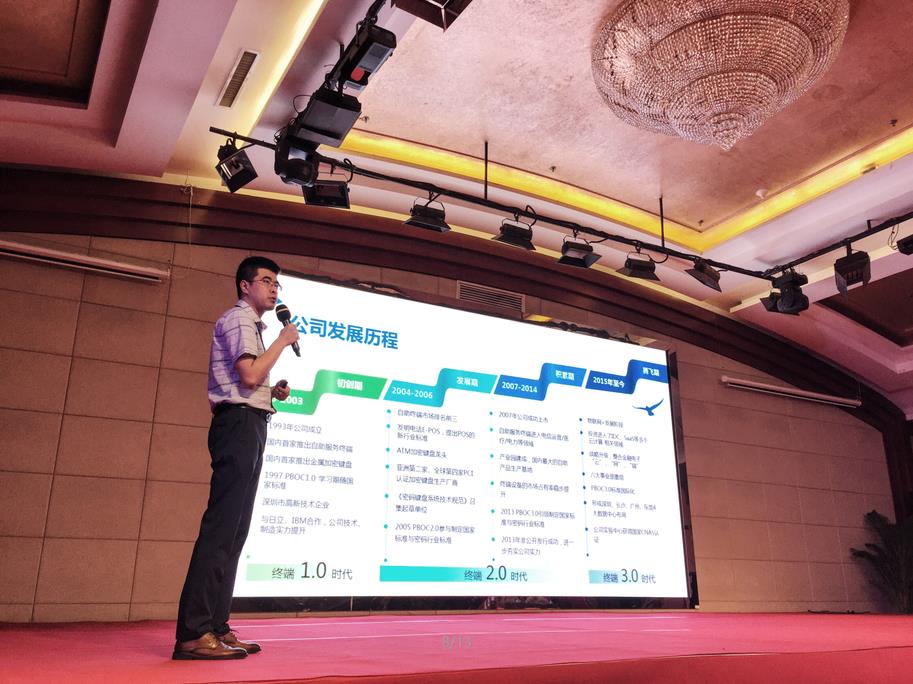 本次論壇由英特爾公司物聯(lián)網(wǎng)事業(yè)部零售行業(yè)市場總監(jiān)黃薇、產(chǎn)品經(jīng)理Raymond率先開講,暢談未來零售銀行、數(shù)字應(yīng)用的現(xiàn)狀與發(fā)展趨勢,同時結(jié)合金融的創(chuàng)新與變革,與現(xiàn)場觀眾交流intel公司在金融領(lǐng)域的產(chǎn)品與最新技術(shù),并寄語未來金融的發(fā)展。來自各地的金融科技企業(yè)代表們,也結(jié)合各自公司的研發(fā)產(chǎn)品及技術(shù),就金融物聯(lián)網(wǎng)的發(fā)展表達(dá)了自己的見解與愿望。證通電子研發(fā)總監(jiān)張卓先生代表公司出席了本次論壇,并發(fā)表精彩演講。
