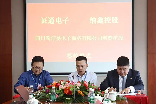本次合作納鑫集團(tuán)將對(duì)證通旗下全資子公司——四川蜀信易電子商務(wù)有限公司(以下簡(jiǎn)稱“蜀信易”)進(jìn)行增資擴(kuò)股,譜寫產(chǎn)業(yè)與金融相結(jié)合的新型合作模式。證通電子總裁曾勝?gòu)?qiáng)、納鑫集團(tuán)董事長(zhǎng)孫明達(dá)、蜀信易董事長(zhǎng)張錦鴻等出席了此次簽約儀式。
