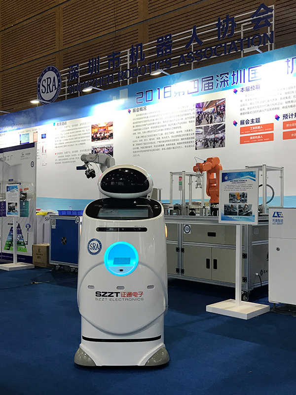 本屆高交會(huì),證通電子小僮(銀行服務(wù)型機(jī)器人)高調(diào)亮相。此次證通電子展區(qū)位于機(jī)器人專區(qū),與深圳市機(jī)器人協(xié)會(huì)中40多家機(jī)器人企業(yè)共同參加。經(jīng)過多年發(fā)展,高交會(huì)機(jī)器人專區(qū)已成為深圳機(jī)器人產(chǎn)業(yè)對(duì)外開放的重要窗口,在推動(dòng)機(jī)器人產(chǎn)業(yè)發(fā)展助力機(jī)器人產(chǎn)業(yè)技術(shù)交流與合作中發(fā)揮著越來越重要的作用。