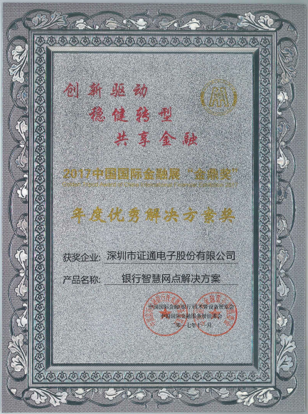近日“金鼎獎(jiǎng)”的各項(xiàng)大獎(jiǎng)?wù)匠鰻t,證通電子的銀行智慧網(wǎng)點(diǎn)解決方案獲“年度優(yōu)秀解決方案獎(jiǎng)”。
