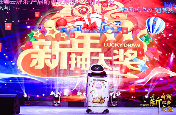 年會抽獎是所有人最為關(guān)注的環(huán)節(jié)了,而今年證通電子的年會抽獎采用了最新的證通科技,明星機(jī)器人小僮的加入萌翻全場,給晚會增色不少。