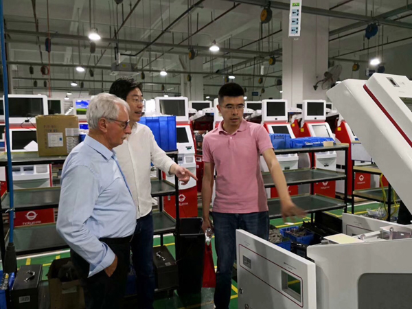 KEBA是全球最大的外幣兌換機(jī)廠家,和中國(guó)印鈔造幣總公司合資成立了中鈔科堡,證通電子和KEBA是戰(zhàn)略合作伙伴。其創(chuàng)始人兼董事長(zhǎng)?Karl Kletzmaier2018年4月23日到訪證通,雙方大老板敘舊誼,談新情,探討新零售和工業(yè)自動(dòng)化領(lǐng)域的新合作。