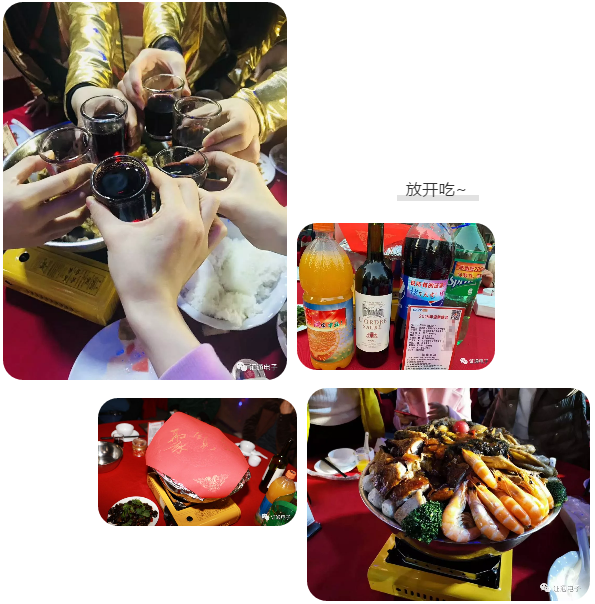此次的席宴的大盆菜整整十層可以說是十分良心了,什么油燜大蝦、客家咸雞、紅燒龍利魚、特色墨魚丸、荷塘蓮藕……多到數(shù)不過來,能吃撐的年會才是好年會~