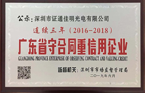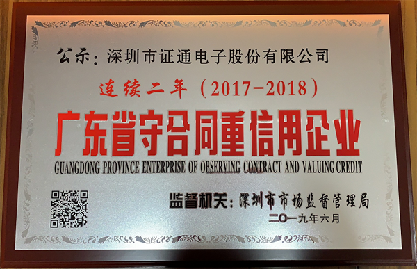 近日,深圳市證通電子股份有限公司及旗下兩家子公司(深圳市證通佳明光電有限公司、深圳市證通云計(jì)算有限公司)分別獲深圳市市場(chǎng)監(jiān)督管理局授予的2018年度“廣東省守合同重信用企業(yè)”證書(shū)。