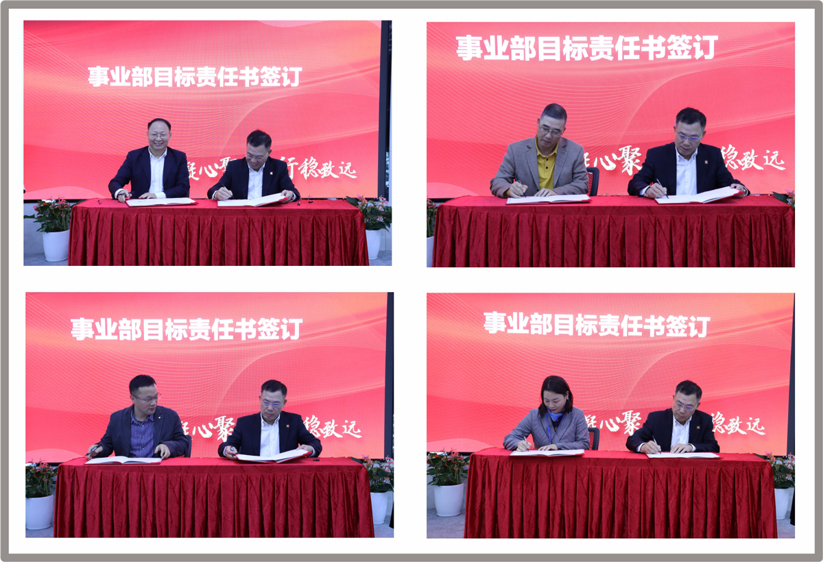 接下來,總裁曾勝強分別與各事業(yè)部負責(zé)人簽訂了2022年度經(jīng)營目標責(zé)任書,并合影留念。