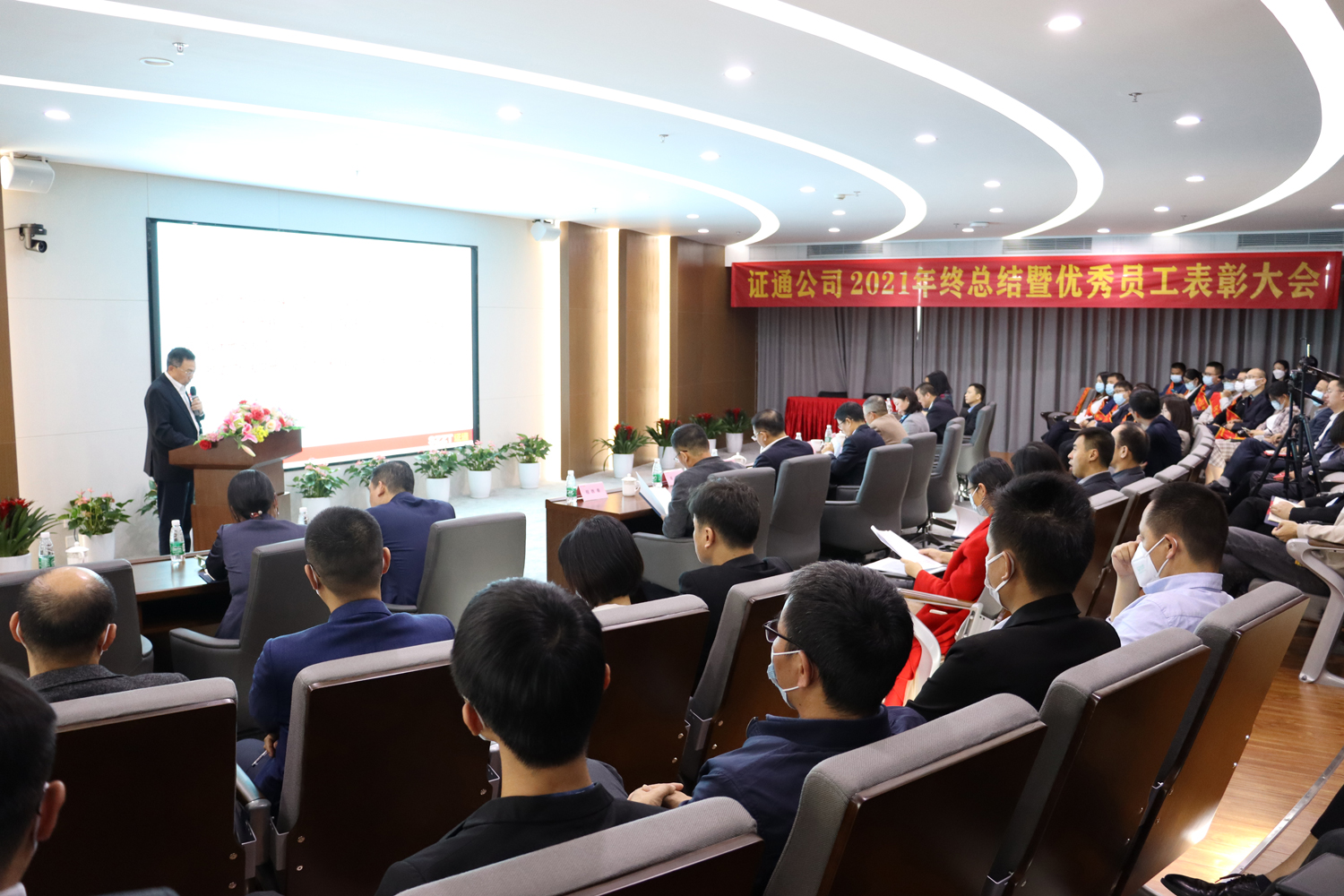他指出,在疫情持續(xù)影響經(jīng)濟下行的壓力下,包括公司高管在內(nèi)的很多干部、很多員工在過去一年的工作中,嚴格按照上年度年終工作會議上提出的“突出主業(yè)、盤活存量、搞活機制、控制風(fēng)險”指導(dǎo)思想開展工作。在嚴控風(fēng)險的基礎(chǔ)上,調(diào)整預(yù)算、優(yōu)化收入結(jié)構(gòu),引進高級管理人才等方面做出了努力,保障了公司的業(yè)績,實現(xiàn)了增發(fā)工作的落地、完成了公司展廳的建設(shè),很好地達成了年內(nèi)計劃的多項重點目標。更是在2021年能源政策調(diào)整中和海外的疫情中頂住壓力,穩(wěn)住了市場,這都充分表現(xiàn)出了證通人高度負責(zé)的精神和主人翁意識,彰顯了證通人的凝聚力和戰(zhàn)斗力!