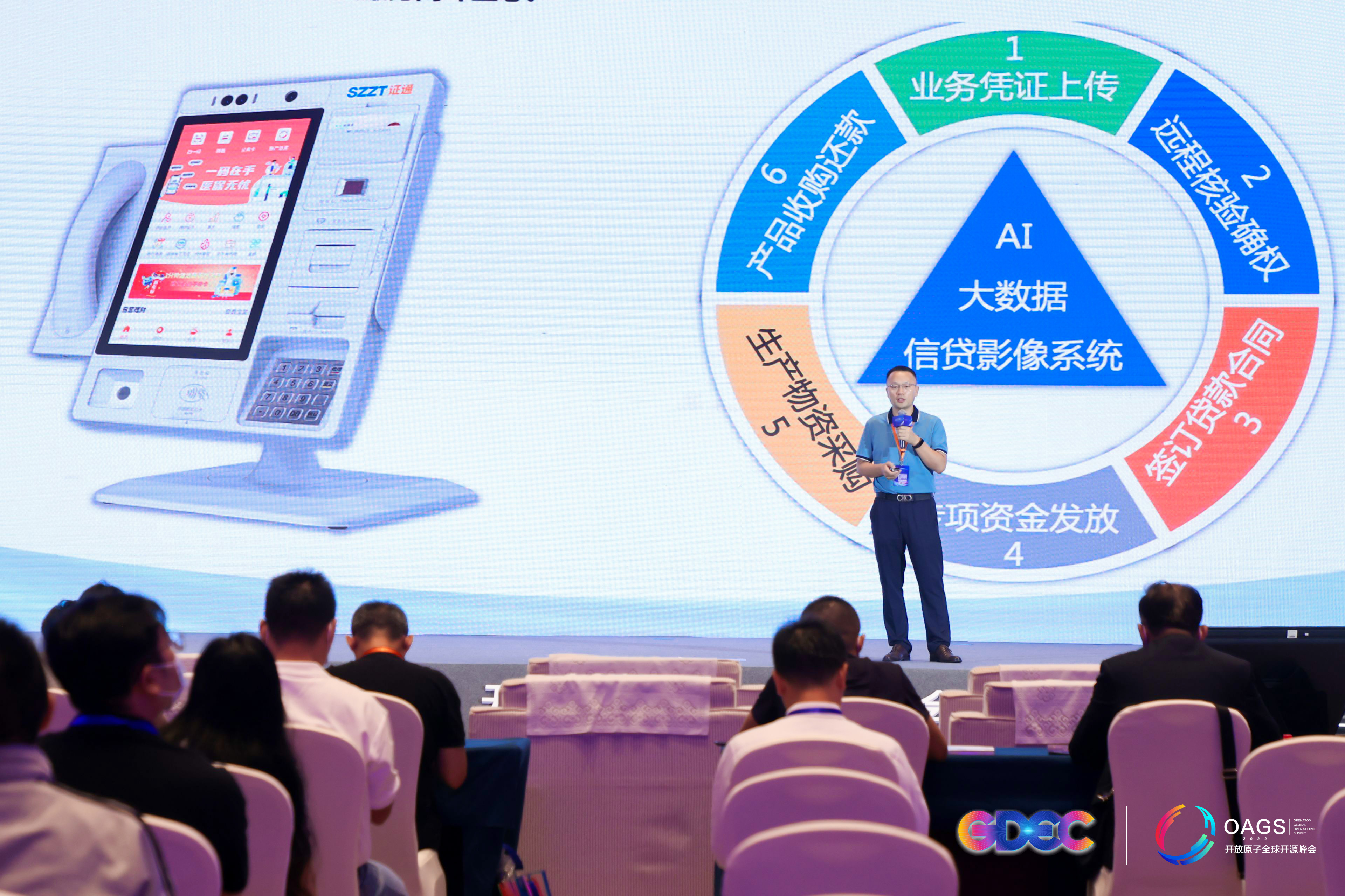 峰會(huì)上,證通電子董事程勝春先生做了《OpenHarmony助力金融科技數(shù)字化發(fā)展》演講,安全支付事業(yè)部付慶先生作為OpenHarmony兼容性工作組代表做了《基于OpenHarmony構(gòu)建金融服務(wù)終端》的演講。
