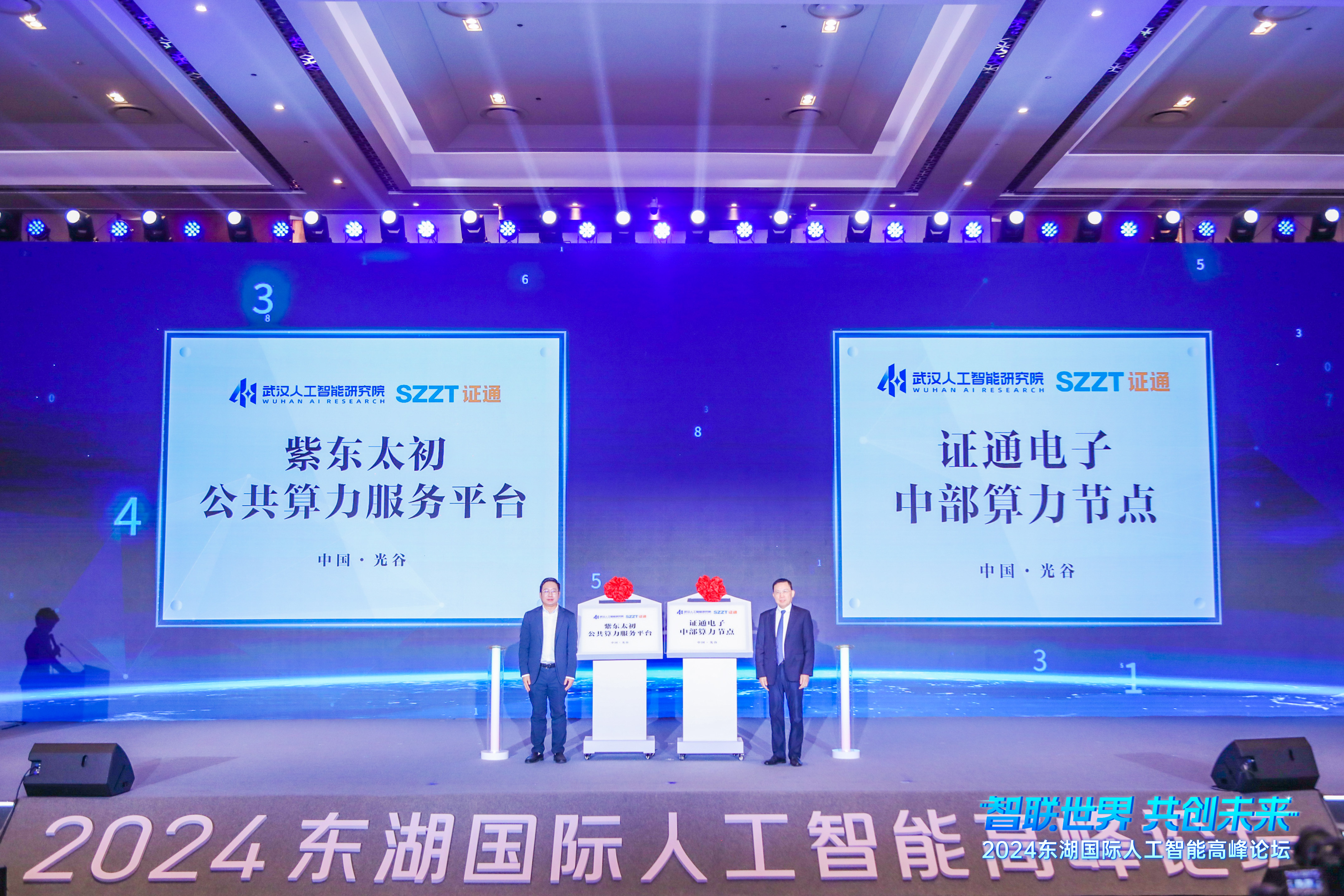 會上,證通電子董事長兼總裁曾勝強(qiáng)發(fā)表主題演講——“專注平臺賦能,共建智算新生態(tài)”,并與武智院一道為“紫東太初公共算力服務(wù)平臺”和“證通電子中部算力節(jié)點”正式揭牌。